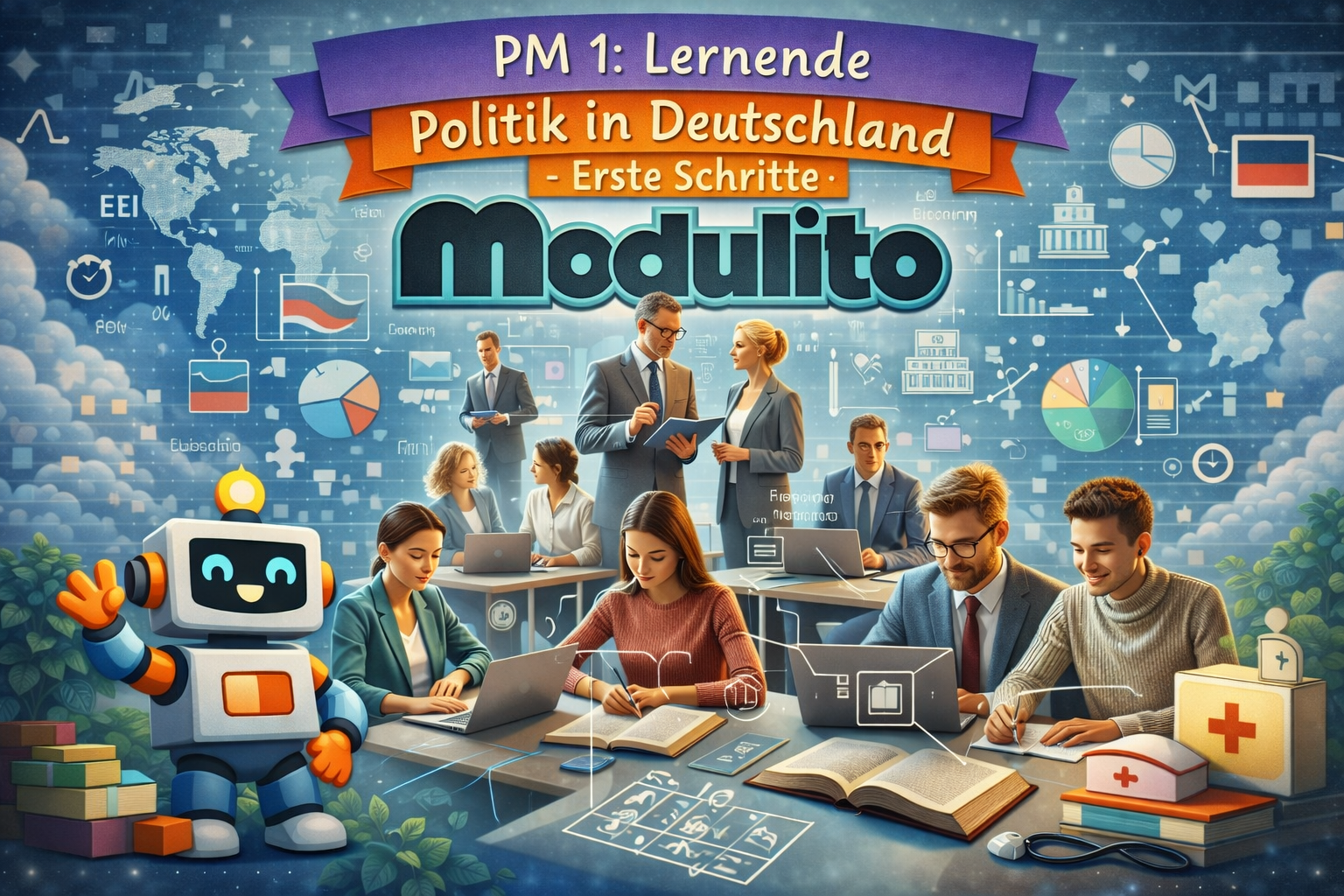 Lernende auf A1 bis A2-Niveau, die Politik in Deutschland einfach erklärt kennenlernen möchten und dabei zusätzlich digitale Unterstützung erhalten.